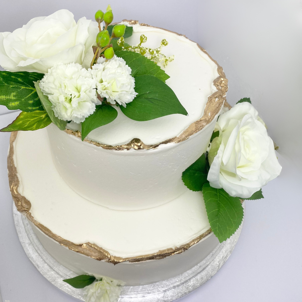 Please note: We DO NOT recommend placing cakes on thin, pedestal cake stands. These can cause your cake to fall and are not stable.